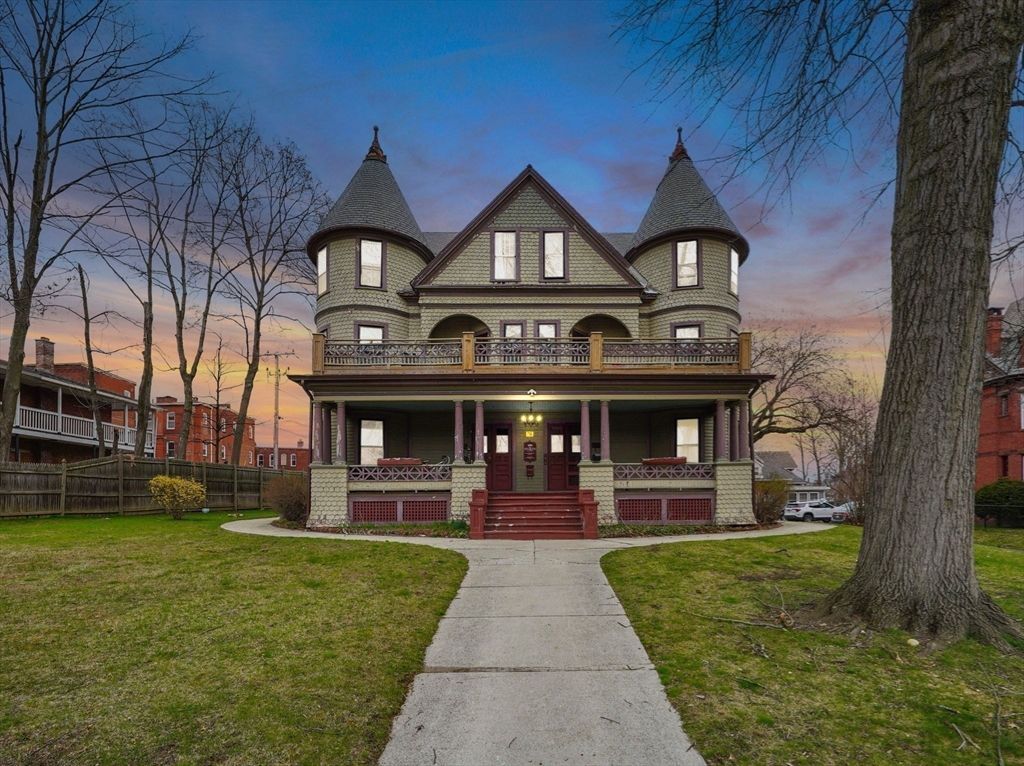 Set within a castle-like historic estate with iconic Queen Anne architecture, this one-of-a-kind 2-bedroom, 1-bath condo offers character rarely found today. Striking turrets, ornate details, sweeping porches, and a commanding presence create an unforgettable first impression.Inside, timeless charm blends beautifully with modern updates. The showstopping turret room features dramatic vaulted ceilings, exposed wood beams, abundant natural light, and a unique space perfect for a bedroom, office, sitting room, or creative retreat. Enjoy access to the shared second-floor porch, ideal for relaxing and taking in the views.The condo also offers...read more