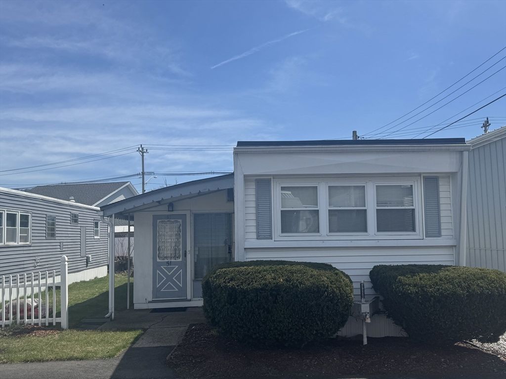 Welcome to Crossroads Village, a 55+ resident-owned community conveniently located in Foxboro. This well maintained home offers two bedrooms and a newer bathroom. Windows and roof replaced in 2004 - vinyl siding with insulation added in 2005. Kitchen features a gas range. The backup built-in propane heater is a perfect feature should the power go out. This home has one neighbor and great privacy. Quiet and cozy. A wonderful three season porch 23 x 8 has storm windows and screens for summer nights. Buyer must fill out a membership application and be approved for membership. A $100 refundable membership fee is due after closing. Lo...read more