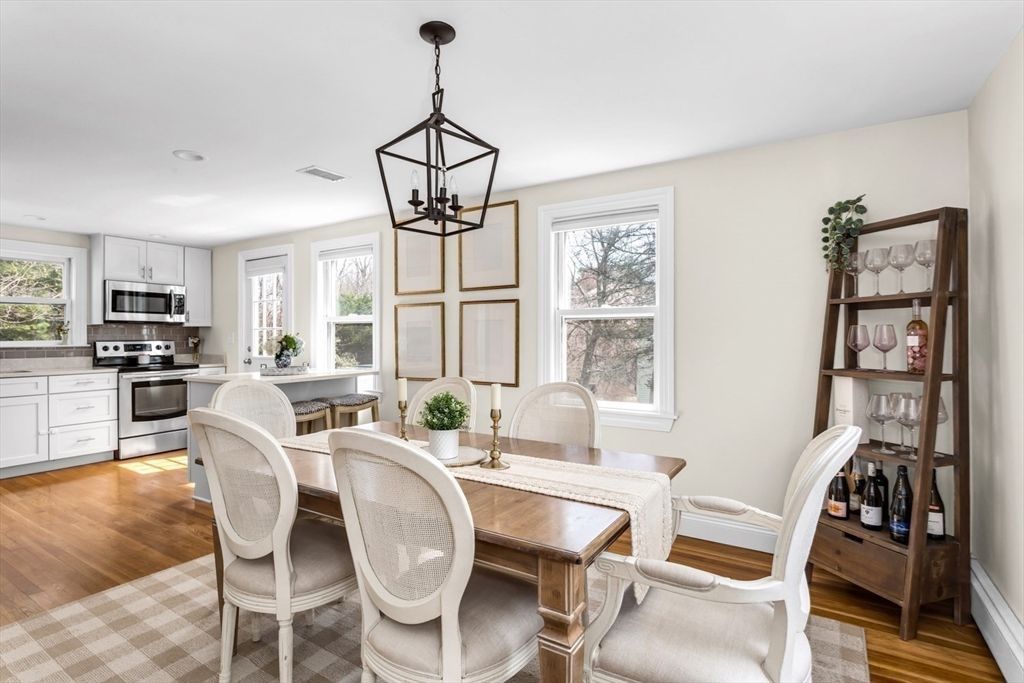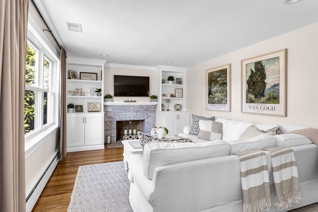Picture perfect! Welcome home to this beautifully kept 3-bedroom, 2 bath Cape situated on a .34-acre lot set back from the street. Open concept kitchen & dining room areas with gleaming hardwood floors. Kitchen has ample cabinets, Quartz counters, SS appliances & island. LR w/ picture window, custom built-ins, recessed lighting and decorative brick FP. 3 generous sized bedrooms including 2 upstairs and 1 on the first floor currently being used as an office. Finished room in the lower level perfect as a TV room, game room, and/or exercise area. With Summer just around the corner, you won't want to miss the incredible fenced in back...read more