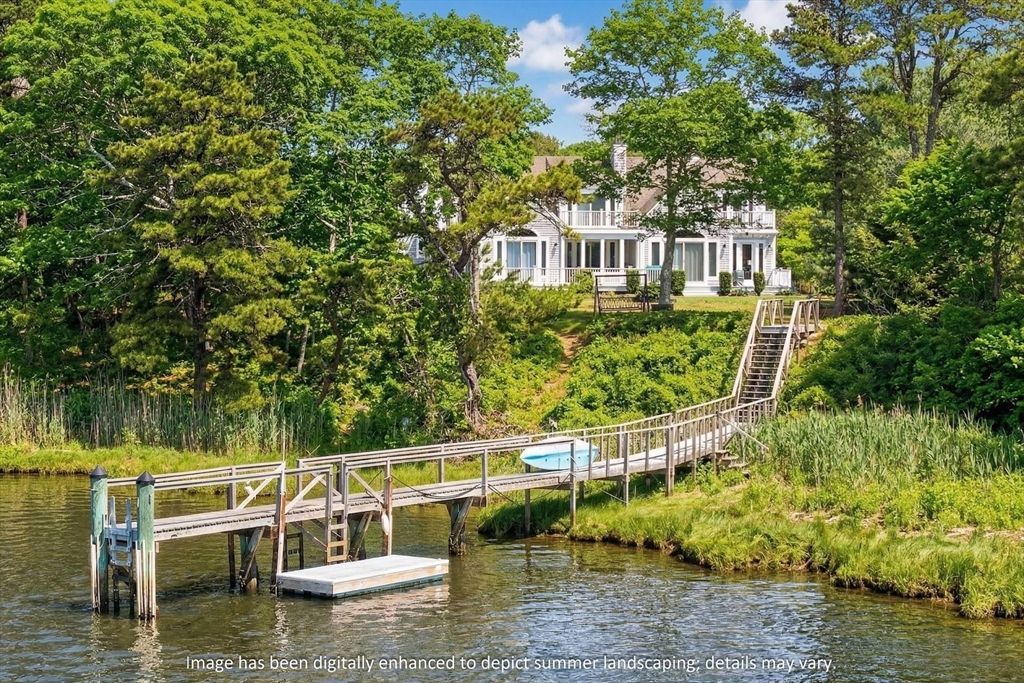 Perched above Shoestring Bay, this magnificent waterfront compound provides a rare combination of natural beauty and modern luxury. Designed to deliver an unmatched lifestyle, the property features a private dock that gives access to endless water activities. Thoughtful details are found throughout the residence, from the gourmet kitchen with a Wolf range and granite countertops to the first-floor primary suite with a fireplace and sliding glass doors that frame breathtaking water views. On the second level, two well-appointed bedrooms each have private balconies and their own full bathrooms. A gracious sitting room enjoys access to a spacious...read more