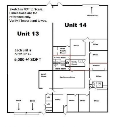 Expansive warehouse space 21'5 to joists and 24' to roof 10k sq ft (plus additional mezzanine storage) of contiguous space is available. Acceptable uses are warehouse, light manufacturing, R&D, and professional offices. Retail can only be ancillary to primary use. Central (Gas) heat and AC in unit 14. Gas fired space heaters (Modine type) for unit 13 with 2 roof top ac units. See floor plan for reference. Office space in unit 14 can be reduced (has 21' 5 clear height as well. 2 dock doors with Levelators in unit 13 plus one ground level door in unit 14. Street signage on pier sign. Ample shared parking plus reserved and overnight truck parking....read more