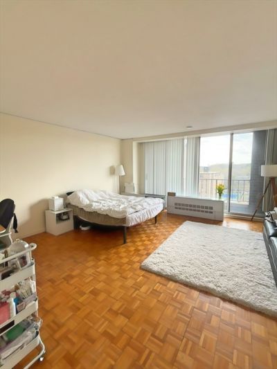 Super sunny studio available at the Brookhouse. Unit features central AC, hardwood floors, heat and hot water included. The Brookhouse is a full service luxury building that has a heated swimming pool, 24 hour security, tennis courts, gym, club room. Garage parking available for additional $200 dollars. Centrally Located less then a 1/2 a mile from Longwood, D & E line across the street, Easy to get into the Boston, Route 9, coffee shops, supermarkets.