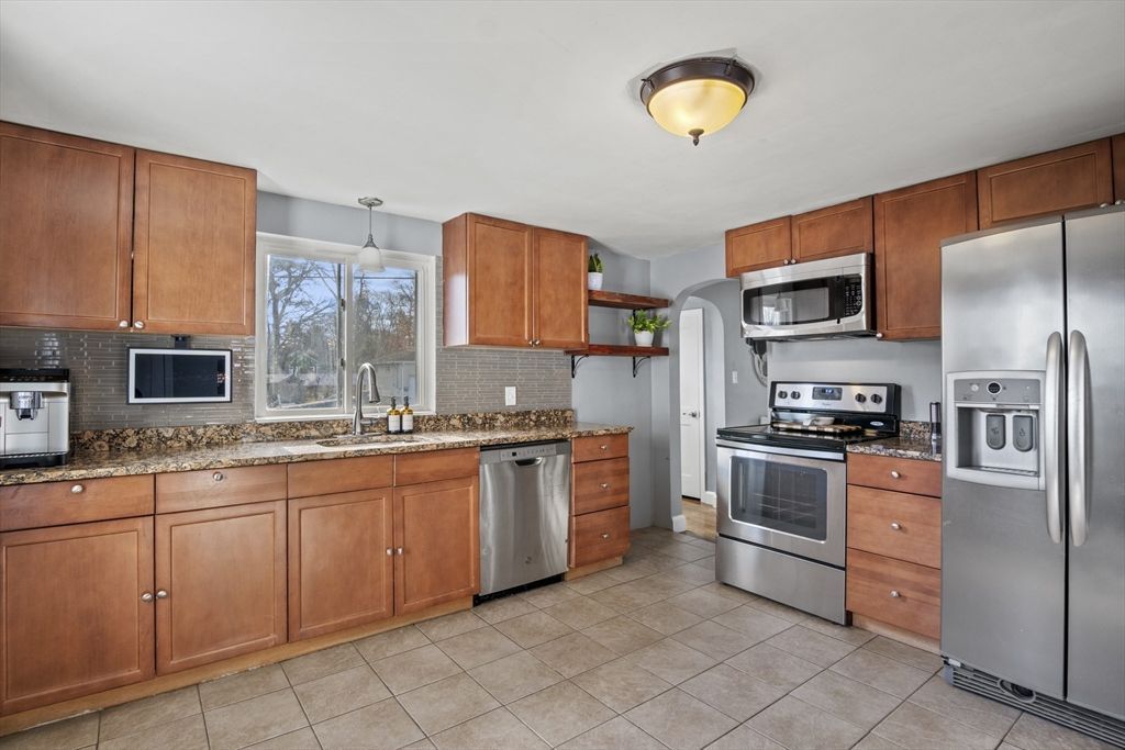 This beautifully updated Cape offers stylish living in a desirable Dudley location. The kitchen features granite countertops, Stainless appliances, a breakfast bar, and ample workspace, flowing into the dining area with direct access to the deck??perfect for everyday living and entertaining. Hardwood floors run throughout the living room and all three bedrooms, with custom built-ins adding charm and functionality. The 1st floor full bath includes a tastefully tiled tub and shower with modern finishes. Enjoy the fully fenced backyard with a large-scale storage shed, an oversized designer composite deck, spacious patio with stone fire pit??ideal...read more