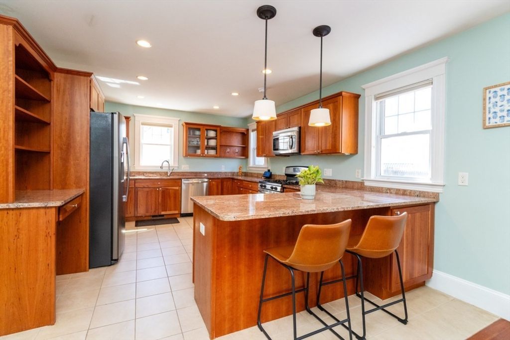 Desireable E. Arlington location offers a beautifuly maintained home- 2 bd 2 ba- duplex . Wecloming entry coat closet leads to spacious sunfilled living rm, entertainng dining rm w/ built in window storage and custom pillow top. Inviting modern kitchen offering S.S. appliances, granite top counters ample cabinetry natural light work, station desk area w/shelving. This spacious kitchen is equipped with a large bkfst bar island- cabinetry on both ends recessed lights. New lighting on main floor additionally offers full tub bath and two spacious bdrms. C/A, gas heat, gleaming HWF's, blinds are some features. Lower Level -shower bath, double...read more