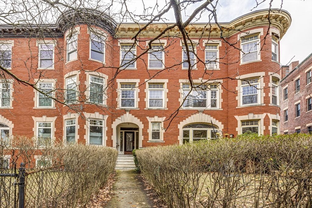 Discover this charming and sun-filled parlor-level Brookline residence that exudes historic character... This inviting home features gleaming hardwood floors, high ceilings, abundant natural light, and elegant period details throughout. The spacious living room offers wide windows, decorative molding, a fireplace, and an adjoining nook ideal for a home office or reading area. The dining room showcases turret windows, a built-in china cabinet, and classic charm. The eat-in kitchen includes newer appliances, and ample cabinet storage and prep space, plus a half bath with in-unit laundry. 2 generously sized bedrooms and a full bath complete...read more